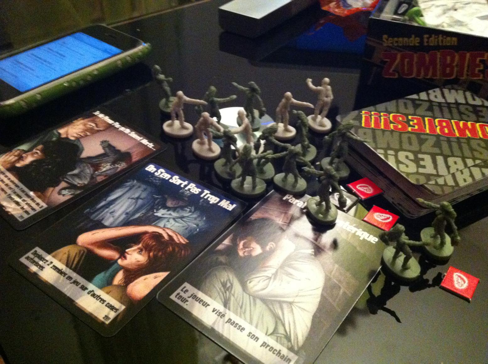Bref, un très bon jeu où la ruse comme la chance sont importantes. Le jeu est très bien fait mais je déplore son design. Il est simple, moche et sombre (on ne voit pas bien les cases, ni les contenus, peut être fait exprès mais peut carrément mieux faire). De plus, je ne vois pas bien l’intérêt du gris clair pour les zombies femmes, gris foncés pour les zombies hommes. Des détails mal placés donc.