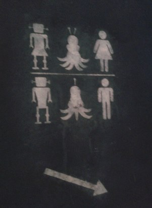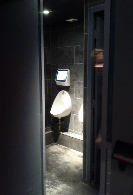 Il faut aussi parler des toilettes hommes, véritables bijoux de technologie et plus impressionnants encore que les toilettes japonais puisque les urinoirs ont été complétés par des jeux vidéo. Faudra aller voir de vous même car je ne pourrai ni vous faire une démo ni vous montrer des photos de plus près puisque la GeekLette n’a pas les attributs nécessaires pour y rentrer… Quoi que Acta a bien failli y aller… [si, si, je t’ai vu !!!]