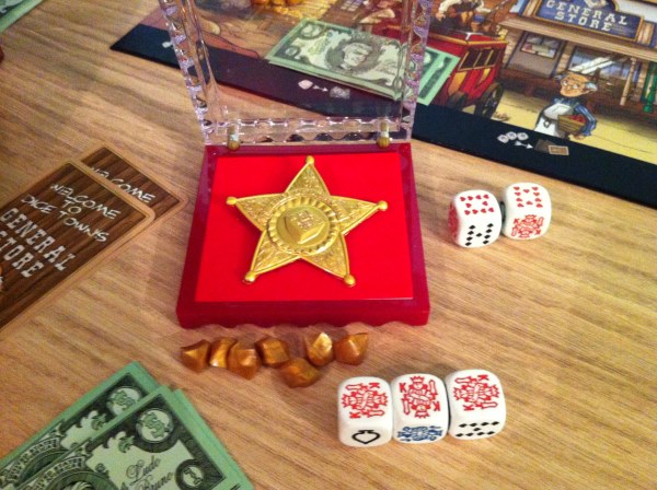 En effet, pour devenir le membre de Dice Town le plus influent et ainsi gagner la partie, les joueurs vont devoir obtenir le plus de points de victoire en cumulant : les pépites ramassées dans la mine d’or, l’argent gagné lors des braquages de banque, les cartes obtenues en magasin, les cartes de propriétés volées ou récupérées auprès du maire sans oublier les points obtenus si vous finissez la partie en étant shérif !