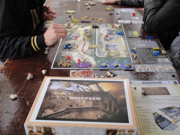 On sentait par ailleurs l’investissement hallucinant des auteurs pour les prototypes des jeux de demain. J’ai pu rencontrer Philippe, futur célèbre auteur des Légendes d’Héléna : Jeu d’aventure coopératif pour 2 à 6 joueurs de + de 12 ans. Il concourait pour le niveau expert. Auteur et tout jeune papa, il a bravé vents et marées (sale douche avec la pluie) pour être au top à toute heure du festival. Il ne compte plus les heures passées sur son proto et les retours sont très encourageants. Je vous invite à aller à sa rencontre rien que pour sa bonne humeur et sa passion, d’autant que son jeu commence à prendre forme.