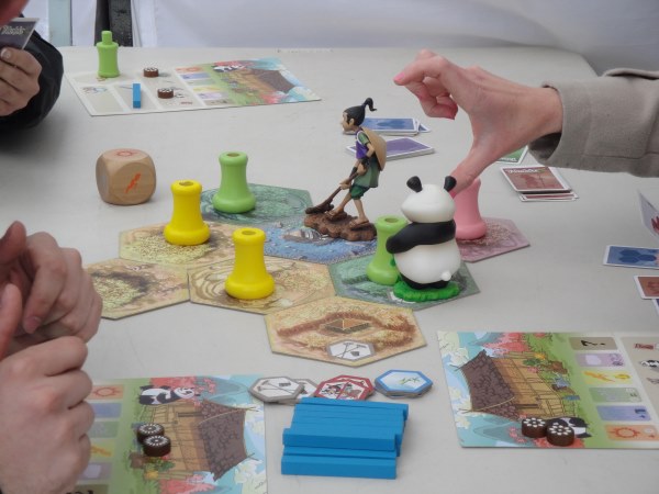 - Espaces très bien agencés mais 2 bémols : les jeux de demain sont indiqués sous une tente (alors qu’il y en avait 2 pour ça), parfois les stands éditeurs tels que Ystari étaient difficilement accessibles (notamment l’illustrateur au fin fond du stand, vrai parcours du combattant pour l’atteindre)
