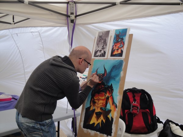 A titre d’information, la démo live de peinture était assurée par Arnaud Demaegd (présent sur la photo), Maëva Kosmic et Christine Deschamps.