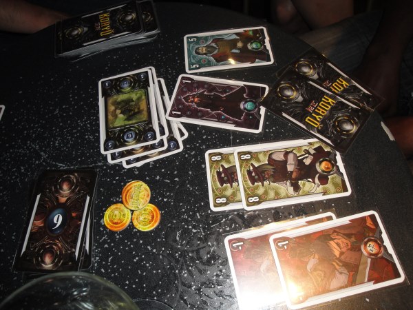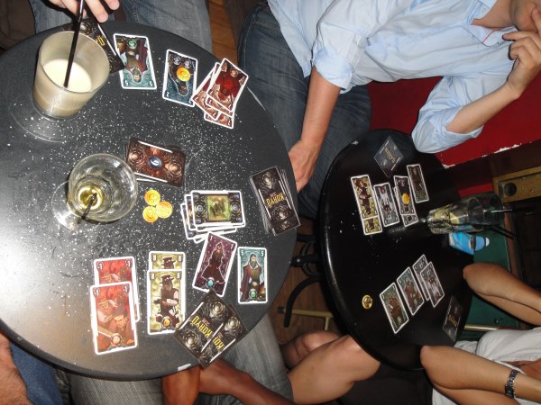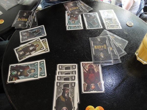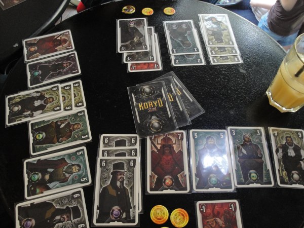 Après 6 mois d’équilibrage, quelques formules mathématiques et près de 500 parties jouées, Koryo est fin prêt pour son lancement ! Et c’est justement à l’occasion de la sortie du jeu (semaine du 9 septembre 2013) qu’Emmanuel Beltrando, de passage à Paris, nous a présenté le dernier né de Moonster Games. Dans cette ambiance unique que crée le dernier bar après la fin du monde, les parties de Koryo se sont enchaînées à 3 puis à 4 joueurs.