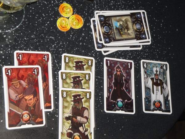 La fin de partie est annoncée après le 8ème tour et le comptage des points se fait aussi grâce à la majorité : celui qui a le plus de 9 remporte 9 points, etc… et celui qui n’a pas défaussé ses événements perd des points.