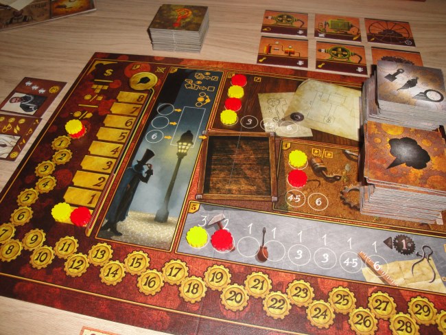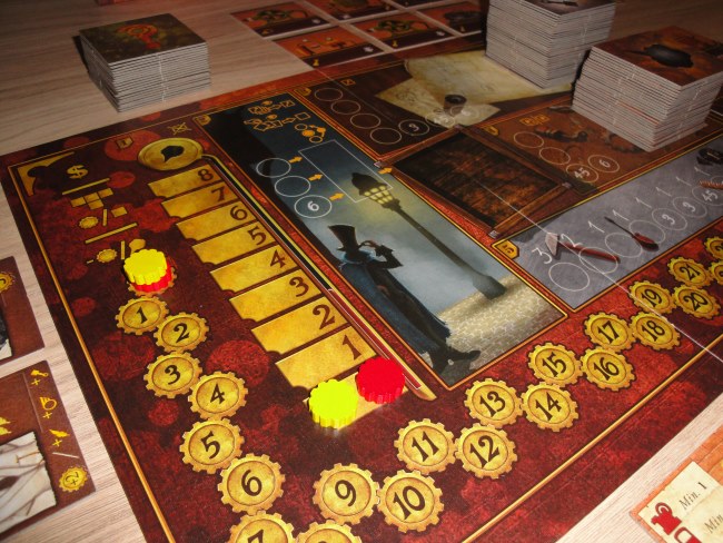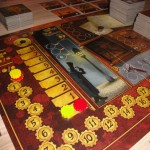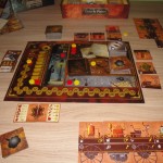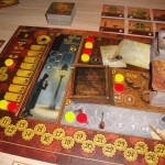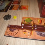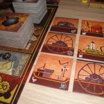 Malheureusement, avec le peu de gêne d’autres joueurs et le peu de pions disponibles les tours s’enchaînent et se ressemblent. Voilà je crois que c’est trop répétitif pour moi. Autant dans Russian Railroads on a l’impression de se placer en fonction de notre développement donc les tours changent ! Mais là, non, on se place toujours aux mêmes endroits d’un tour à un autre en espérant même pas être premier joueur du tour suivant puisqu’il y a de la place pour tous. Bref, on n’est ni rentré dans le thème ni dans la mécanique mainte fois mieux exploitée.