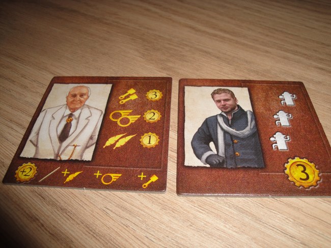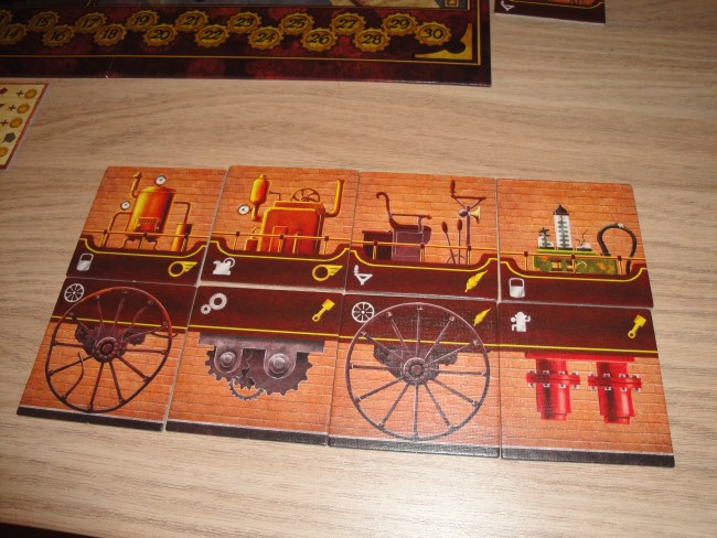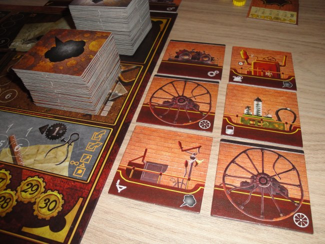 Arrivé à l’atelier, vous disposez (suivant l’ordre de votre pion) de plusieurs actions : construire 1 pièce pour 1 action ou réparer des pièces défectueuses (si vous avez la tuile correspondante) pour 1 action. Evidemment il ne faudra pas oublier les investisseurs (piochés en début de partie) et tenter de s’approcher de ce qu’ils demandent.