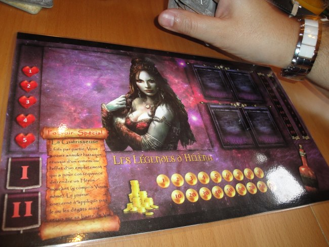 Mais ne parlons pas de mon projet ni de moi, ici il est question de son jeu « Les Légendes d’Héléna » qui est en phase de prototype. Finaliste du concours de Paris est Ludique, ce jeu d’aventures, au thème inspiré du médiéval-fantastique, connait déjà un bon nombre de parties. L’équilibrage et les petits détails de règles sont encore en cours mais l’auteur souhaite réellement le finaliser avec soin, sans précipitation, prenant en compte tous les avis constructifs.