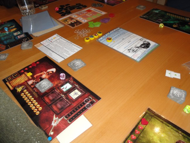 Merveilleusement violent donc, ce jeu me fait frôler l’hystérie… je le déteste autant que je l’aime. Et j’ai une furieuse envie d’y revenir pour découvrir les autres scénarios (pour ne pas dire me venger…). C’est tellement frustrant de faire 4 événements d’affilée sans rien gagner mais en perdant toujours quelque chose. On défonce la bête et le butin est pour le voisin ! C’est dur !