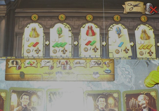 A la lecture des règles, on peut être inquiet. En effet, Maîtres Couturiers s’aventure dans un mélange de deck building (comme dominion), de gestion de ressources et de placements. On peut donc craindre des règles bancales et mal équilibrées entre les différents systèmes… Autant oublier ces doutes immédiatement, « Maîtres Couturiers » présente des règles maîtrisées de bout en bout. Et faut vraiment saluer cet effort car le pari était loin d’être gagné.
