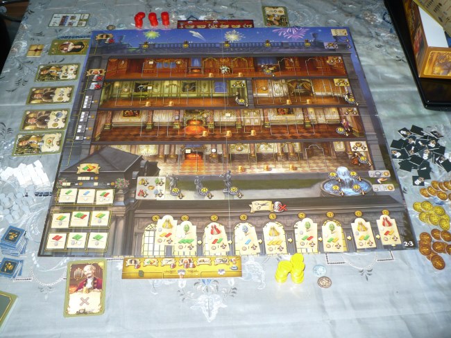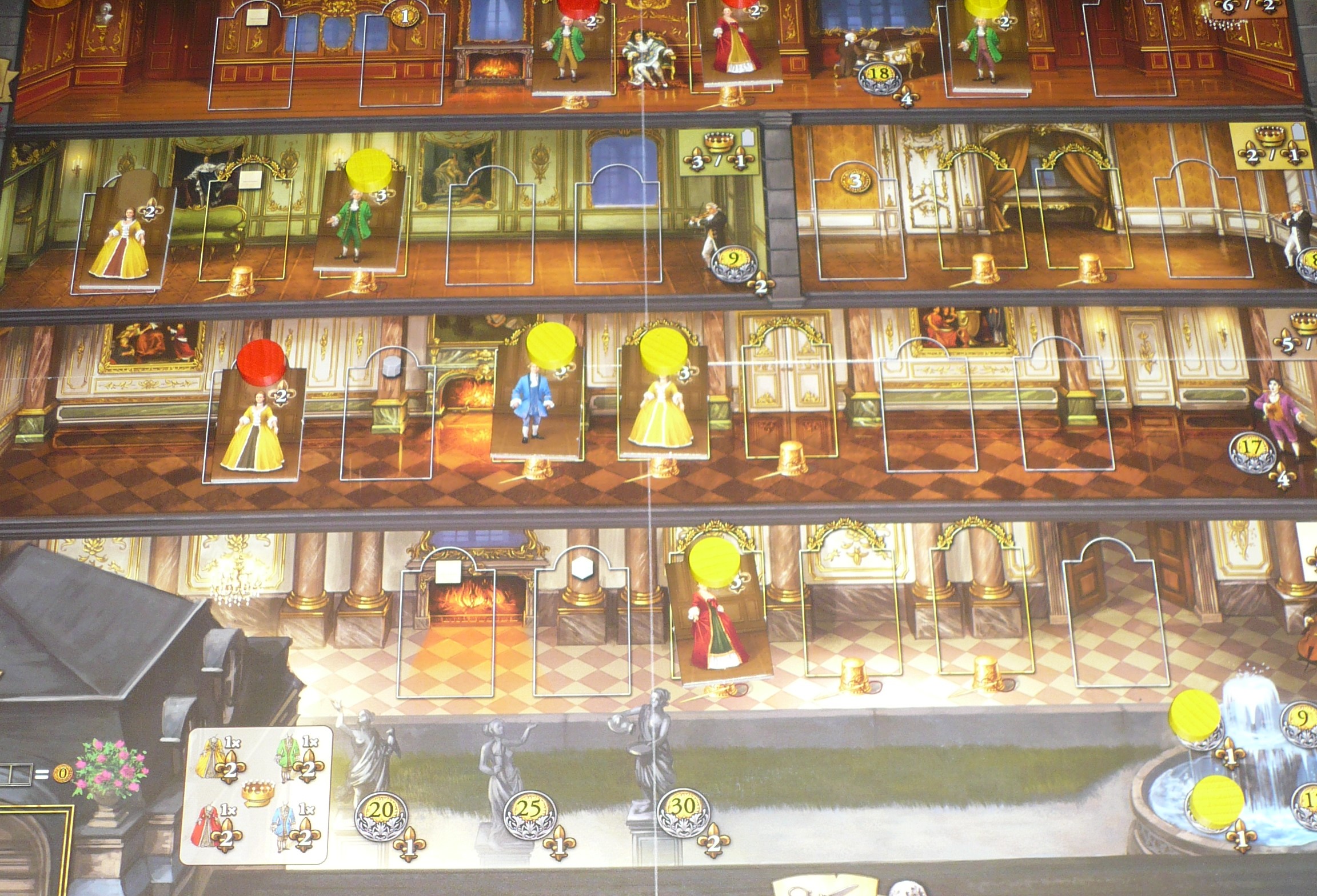 - Financer des embellissements : Le joueur dépense de l’argent pour embellir les salles du château. Ceci permet notamment de gagner de l’argent à chaque manche ou de réserver les meilleurs place pour le feu d’artifice de fin de partie (et multiplier ainsi ses points de victoire).