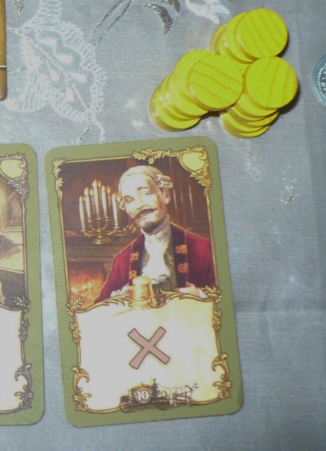 - Prendre la carte Reine : celle-ci fera de vous le 1er joueur du tour suivant et vous permet de gagner immédiatement 5 Pièces d’Or.