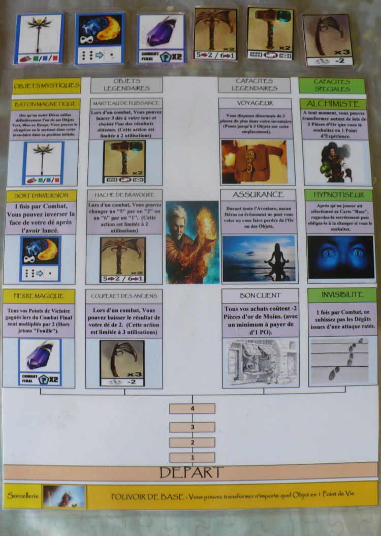 Et heureusement, depuis, le jeu n’a pas changé en soi, les règles restent inchangées mais il y a eu des ajouts forts sympathiques. Le nouveau prototype, en plus d’alléger le texte des aventures, comporte plusieurs éléments supplémentaires :