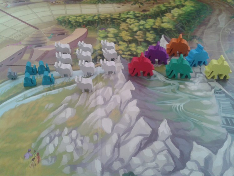 - Une mise en place ultra rapide : Tu ouvres le plateau, tu distribues les cartes tu poses les quelques meeples d’animaux et c’est partie !