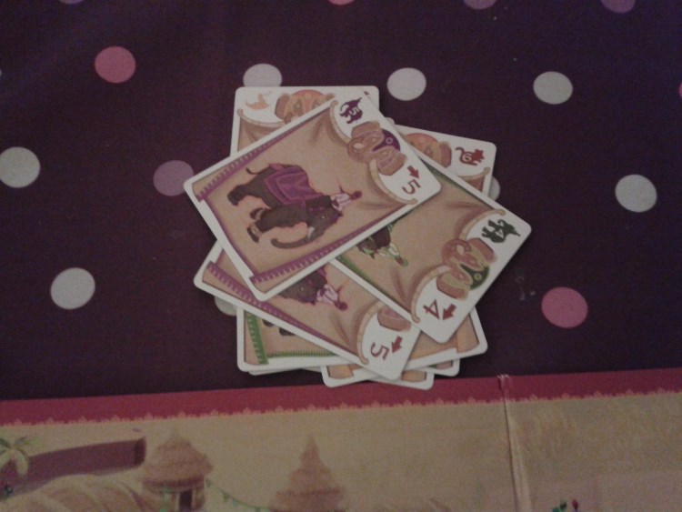 Très simplement ! Une fois devant la ligne de départ, les joueurs, munis de 6 cartes, vont pouvoir faire courir leur éléphant. En effet, à son tour de jeu, un joueur doit réaliser une seule des actions suivantes :