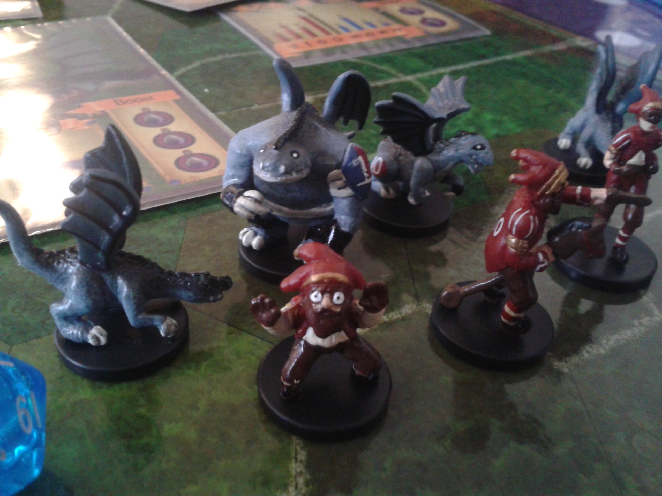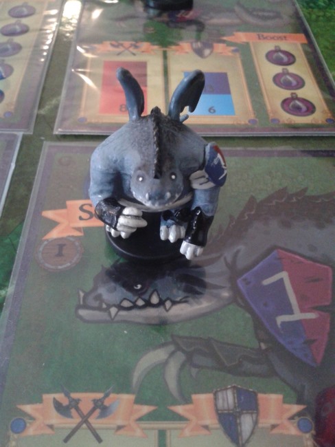 Un défi sûrement pas. Lorsqu’on commence, je crois qu’on ne voit pas vraiment dans quoi on met les pieds… Par contre, on a beaucoup testé le jeu, avec des jetons (comme dans Mr Jack), avec des carrés cartonnés (comme dans les wargames), avec des stand-up (comme dans Dungeon Twister). Et puis on a aussi testé le jeu avec les figurines de bloodbowl. Et je dois dire que le jeu avait vraiment un goût tout différent avec des figurines.