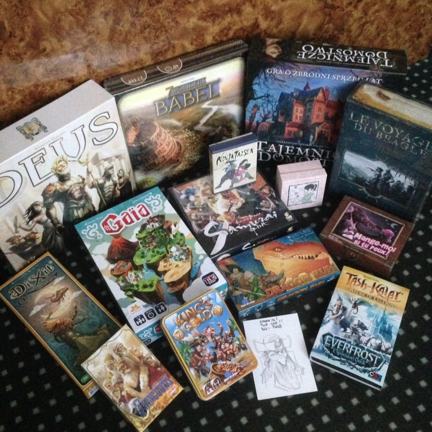 Autres jeux ramenés : 3 jeux asiatiques 7 kingdoms, Ninja taisen et Colors of kasane, 1 ukrainien tajemnicze domostwo édité chez les polonais de portal game, le jeux québécois Gaia. Pour ces jeux étrangers les règles anglaises ou même française sont disponibles sur le web.