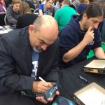 On profite que les garçons s’éclatent à des jeux de gueguerre [ :p ] pour rejoindre le stand de Repos Prod pour faire signer les boites de 7 wonders Duel par Bruno et Antoine. J’en ai profité pour faire signer Kraken par Bruno et plus tard par Charles Chevallier. (Au passage, 7 wonders Duel est une tuerie!!!)