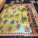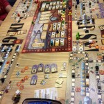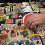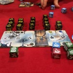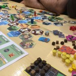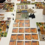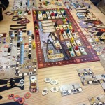 Merlin, Muir, Rubuscube et moi-même entamons une partie de The Prodigals Club sur le stand de l’éditeur Czech Games Edition. Étroitement lié à Last Will, The Prodigals Club se joue bien sans Last Will mais les deux jeux peuvent aussi être combinés !!! Au milieu de l’explication des règles, je dis à Merlin que c’est un instant buy et la partie (complète) ne fait que confirmer le talent de l’auteur et de l’éditeur. Une superbe partie, des choix tendus, de la pose d’ouvriers. Alors rien d’original, mais qu’est ce que c’était génial !!! Et puis à 30 euros franchement , autant pas s’en priver vu le matériel (sans dés cette fois-ci).