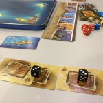 Un jeu dans lequel on développe son île entourée de ports sur lesquels on place des tuiles à pouvoir et quand notre bateau tombe dessus les tuiles s’activent. Ce sont les dés qui décident du déplacement du bateau (avec qq actions du capitaine bienvenues). Un jeu ma foi extrêmement bon mais aucune interaction ! on développe son île et on score mdr Dommage car il est vraiment sympa pour ceux qui aiment développer stratégie et scoring.
