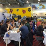 Il est très difficile de trouver des tables libres mais on se ballade dans les allées espérant trouver la perle rare ou un jeu qui attire assez notre attention pour une explication de règles rapide ou non. Ce deuxième jour ne fait que confirmer ce que tout le monde sait déjà : c’est un supermarché blindé de monde !