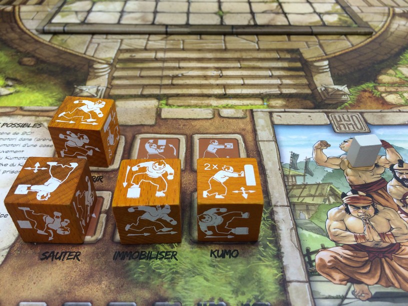 Après une partie, on se disait « oui, ok, on lance des dés et on n’en garde qu’un, et le premier arrivé à 6 (à partir de 1) gagne » et puis à force d’y jouer, à force de discuter, de voir les autres jouer, on s’est pris au jeu. Évidemment j’ai pensé à mes collègues en voyant ce type de jeu, j’ai donc craqué… et je suis repartie avec. Et je peux vous dire qu’en petit jeu c’est mon petit coup de coeur 🙂 Pas donné mais ambiance garantie. Deux éditions étaient vendues à Essen une à 30 € et l’autre à 50 € (dans la seconde les illustrations ont été refaites).