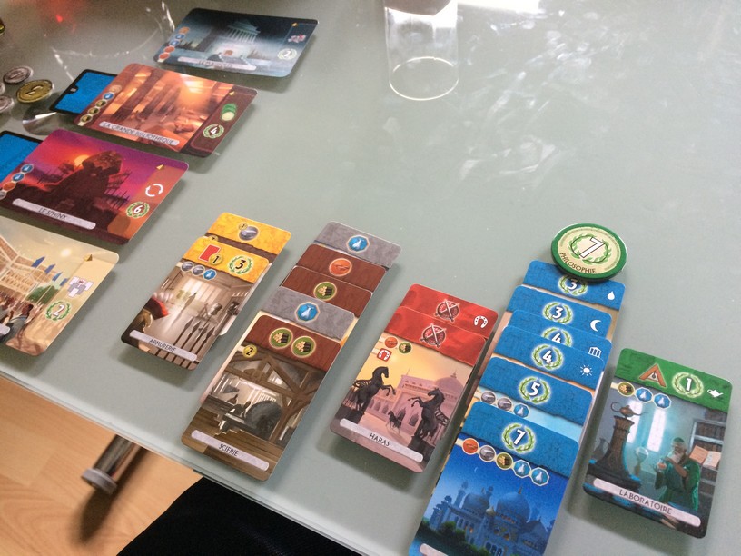 Je fais partie de ceux qui trouvent 7 wonders un peu froid depuis le jour où on a joué à 5 chez Micha et où personne n’a parlé. J’aime ce jeu hein, mais on lache un sourire que quand on file une carte merdique à son voisin 😀
