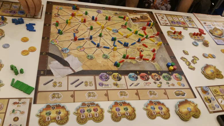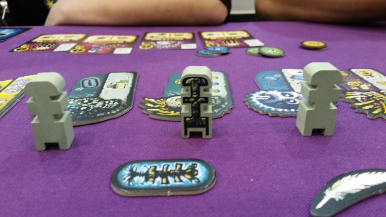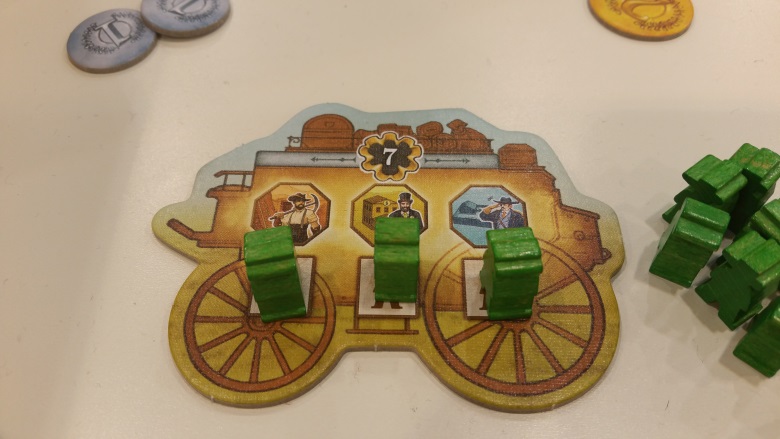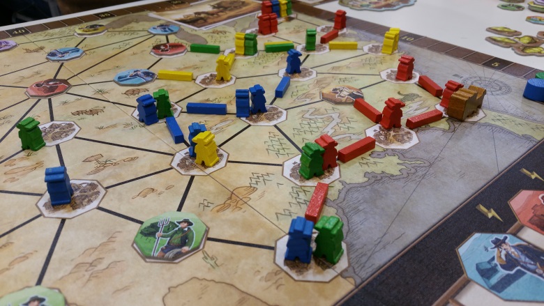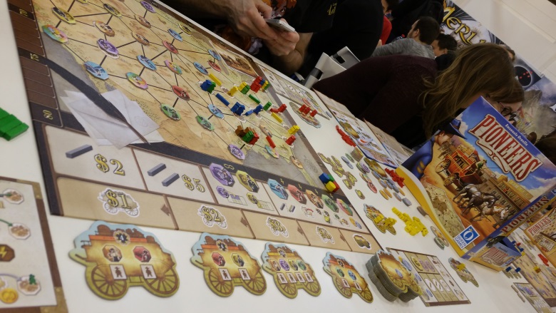 Pioneers était dans mon top 9 avant de partir car la règle du jeu ne présageait que du bon, c’est donc naturellement qu’on s’est assis à une table pour y jouer. L’objectif de Pioneers est de répondre à la demande des villes. Ces villes cherchent en effet des experts (sheriff, banquier…). Terriblement simple à jouer ; à votre tour de jeu, vous avez 3 phases :
