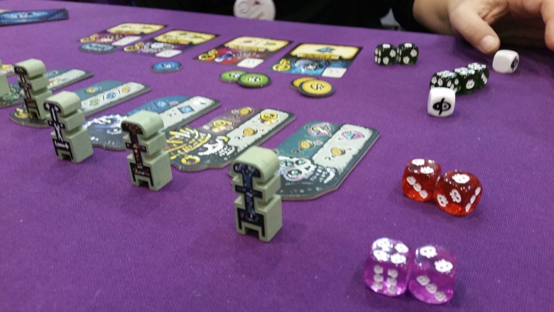 Il n’est pas encore sorti mais Florian (co auteur du jeu avec Bruno Cathala) nous a laissé un proto. On s’est jeté dessus le soir même.