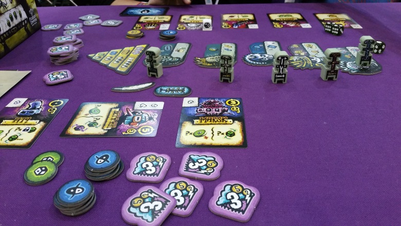 - Dans l’ordre du tour, on choisit chacun une machine cassée, onéreuse ou non (ou bien on choisit de prendre la ressource principale (charbonium).