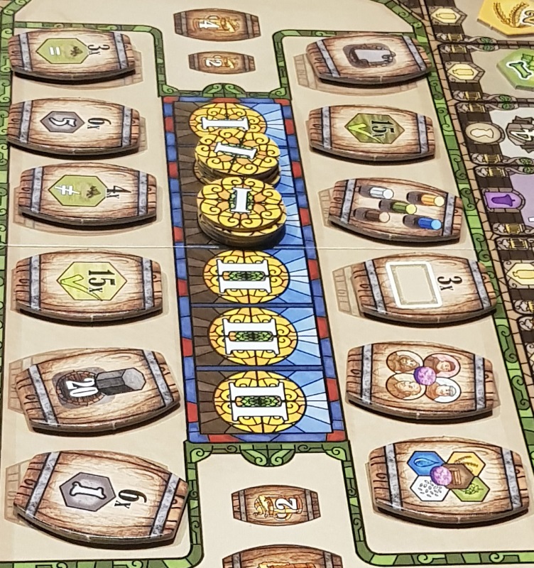 L’autre aspect très intéressant est le placement des différentes ressources et moine sur le plateau personnel pour chercher à optimiser les revenus. La course à l’argent est super importante car les ducats partent très vite, mais il faut aussi monter les différents marqueurs et le maître brasseur car à la fin c’est quand même eux qui comptent.