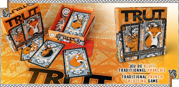 Je voulais parler de Trut, petit jeu de plis, vieux jeu remis au goût du jour ayant fait l’objet d’une campagne kickstarter qui a plutôt bien marché.