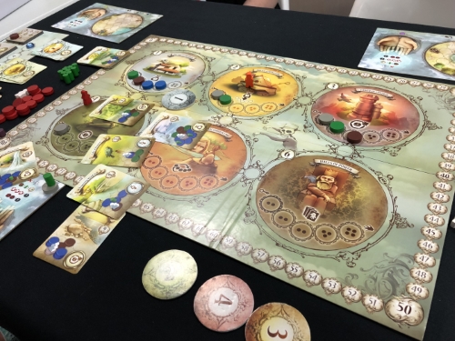 On reste sur du placement d’ouvriers comme Raiders (l’iconographie bien connue n’en perdra pas en chemin) et comme déjà dit, quand j’ai joué à Essen avec Shem Philipps himself, il y a quelques particularités qu’on a adoré :