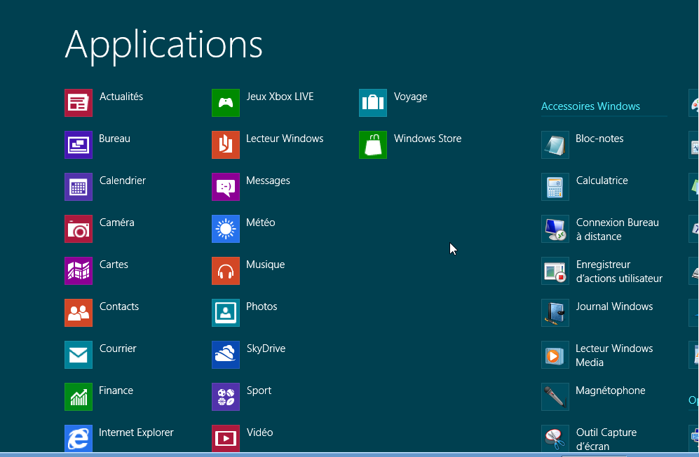 - le bureau « classique » peut aussi être utilisé mais le menu démarrer a bel et bien disparu. Par contre, je ne comprends pas l’intérêt d’avoir gardé le bureau.