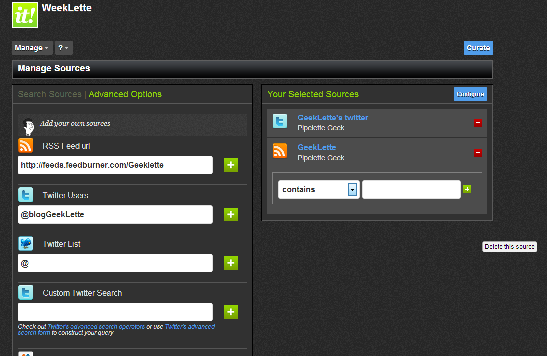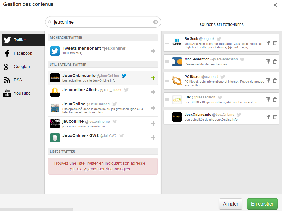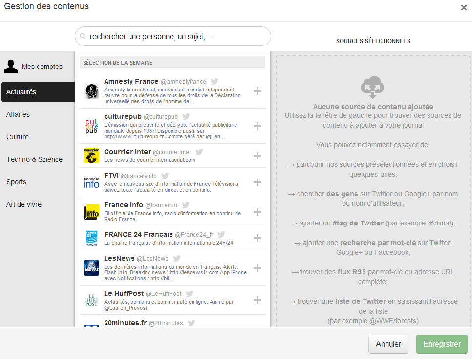 - Ajout de source d’information de tout type (Site, RSS,Twitter,Facebook…)