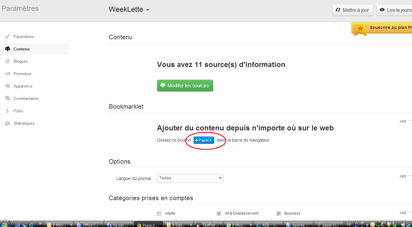 - Bouton « + Paper.li » à mettre dans les favoris pour ajouter un article à son journal