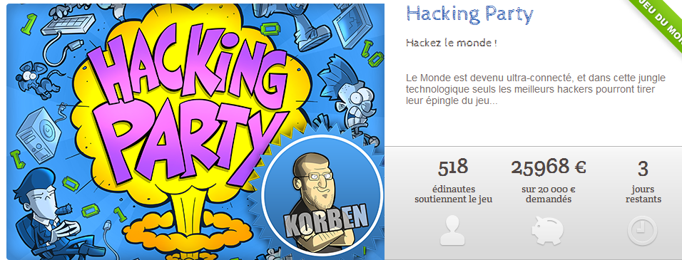 Si je fais cet article aujourd’hui c’est parce que j’ai suivi le projet de Korben qui est à l’initiative d’un jeu de plateau nommé Hacking Party : « diriger votre équipe de hackers pour faire sauter le monde ».