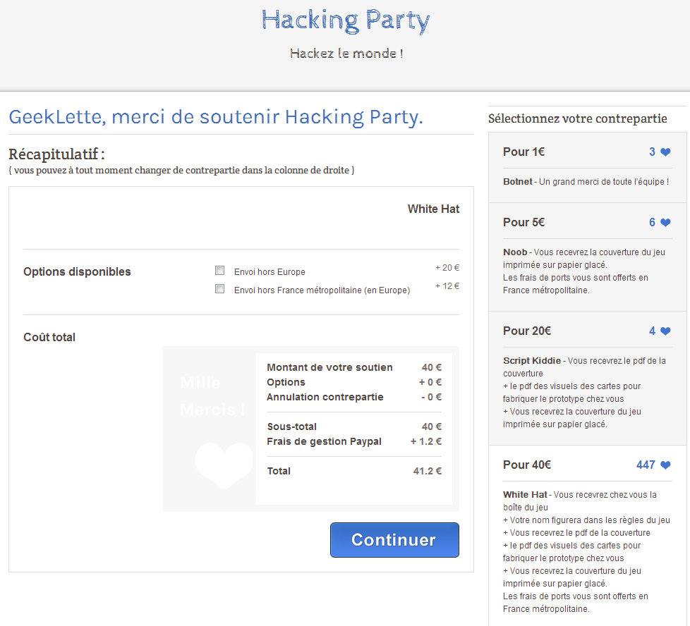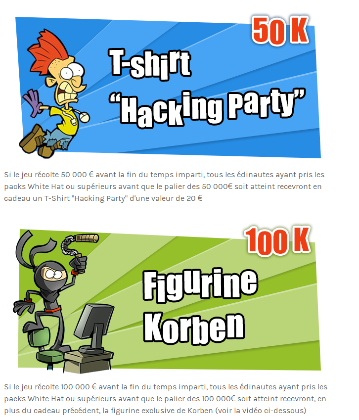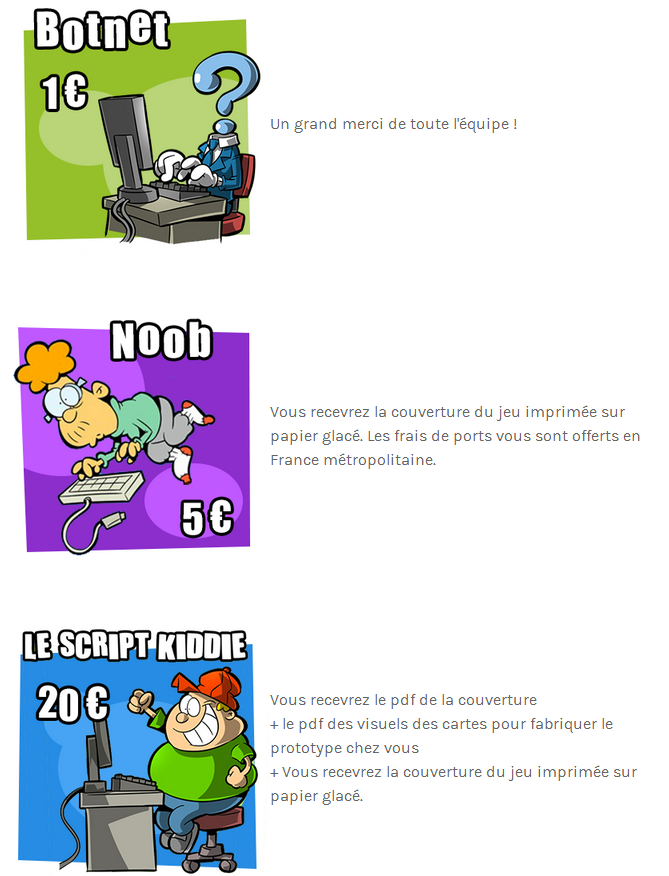 - A chaque palier de paiement sa contrepartie en accord avec le thème (j’aurai bien aimé voir ma GeekLette dans les cartes)
