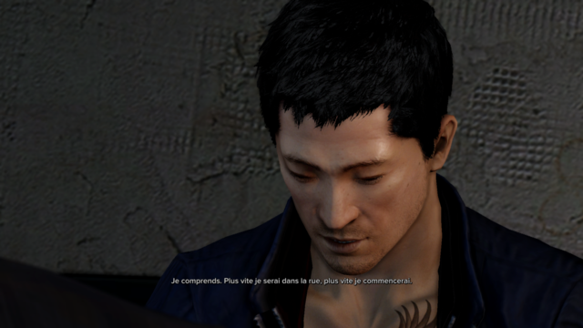 J’ai d’abord été carrément surprise par la qualité vidéo et ensuite par le scénario. On joue Wei Shen, un agent infiltré au coeur des triades hongkongaises. Rien à voir avec World Of Warcraft et SWTOR et pourtant j’ai bien accroché au titre.