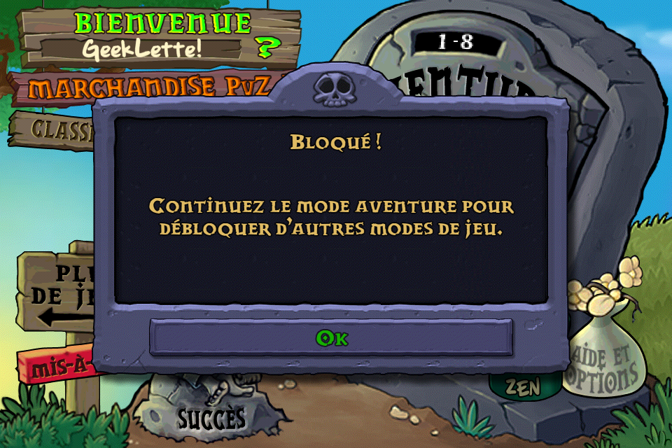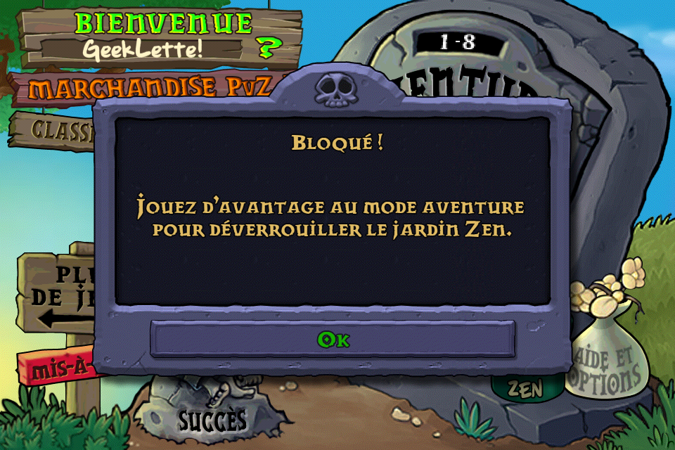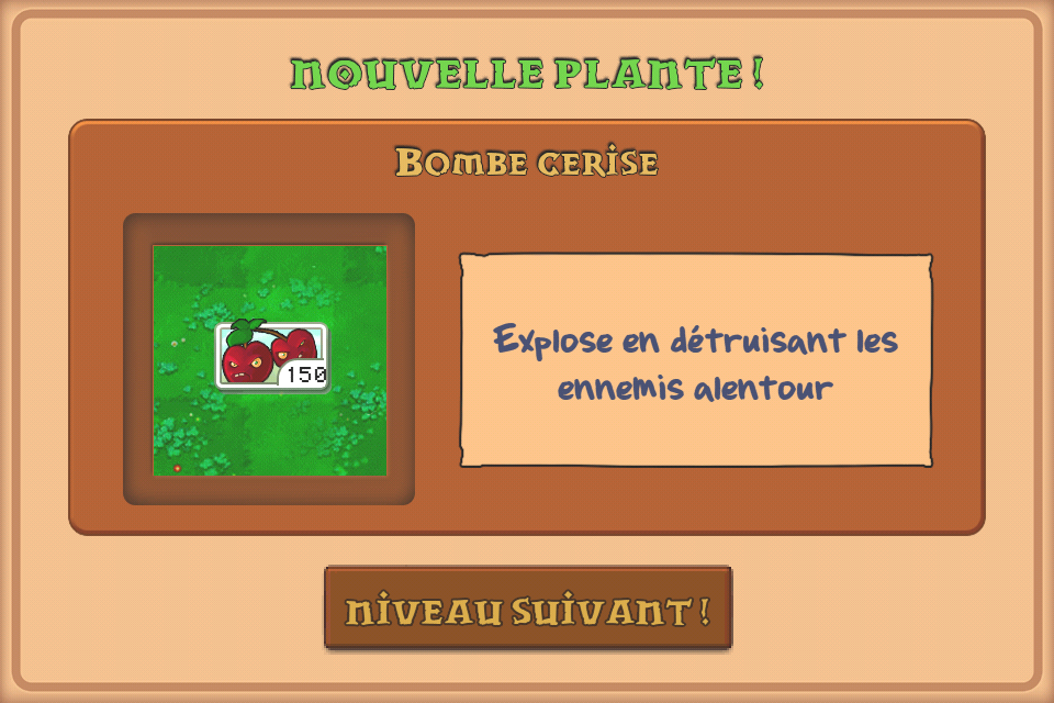 - pour les débutants, le jeu commence par l’acquisition au fil de quelques niveaux de certaines plantes qui vous serviront pour des niveaux plus difficiles