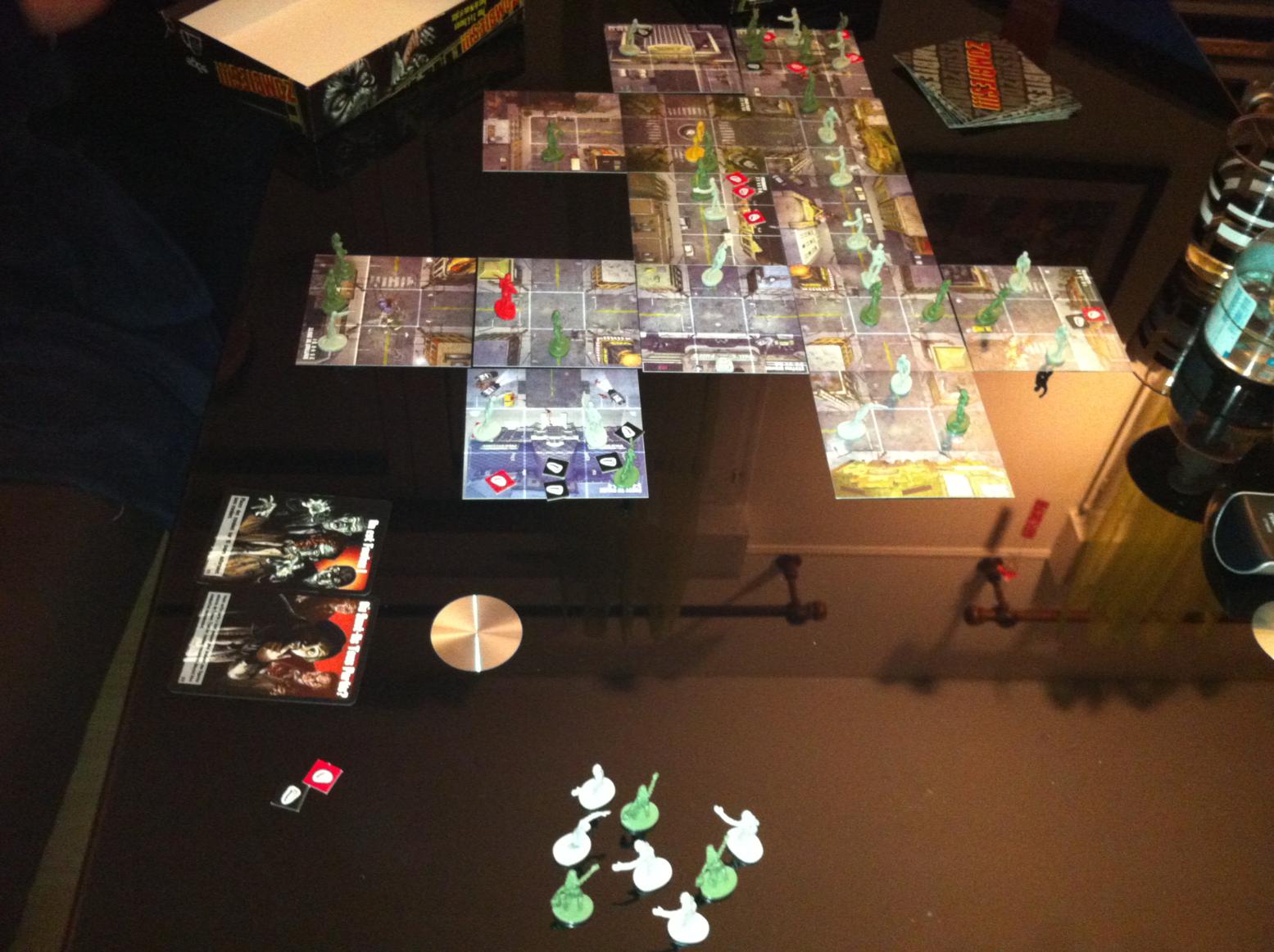 • Le plateau se dévoile au fur et à mesure des tours, les déplacements de zombies permettent de rendre la tâche difficile à vos adversaires mais les cartes s’avèrent particulièrement utiles lorsque la carte héliport est tirée (il est donc indispensable de ne pas les oublier : il faut se défausser et piocher jusqu’à avoir 3 cartes UTILES…).