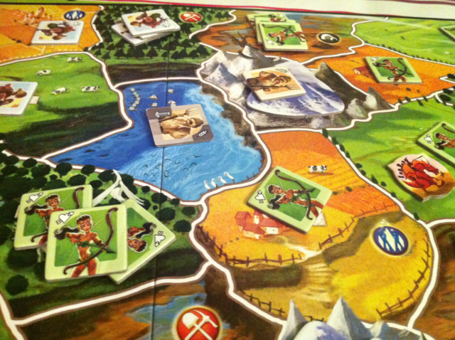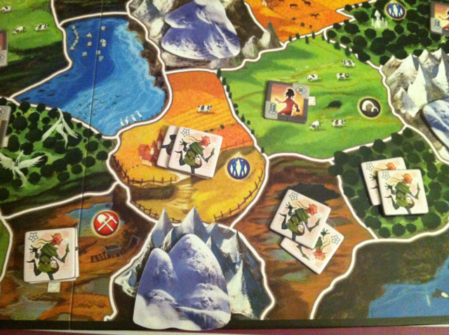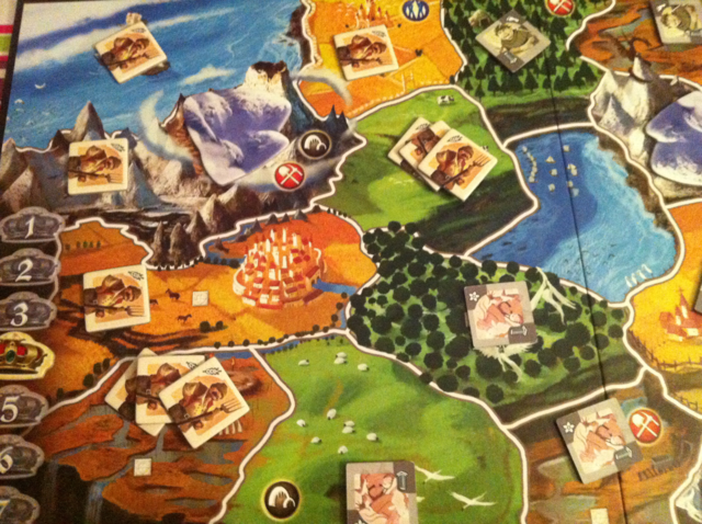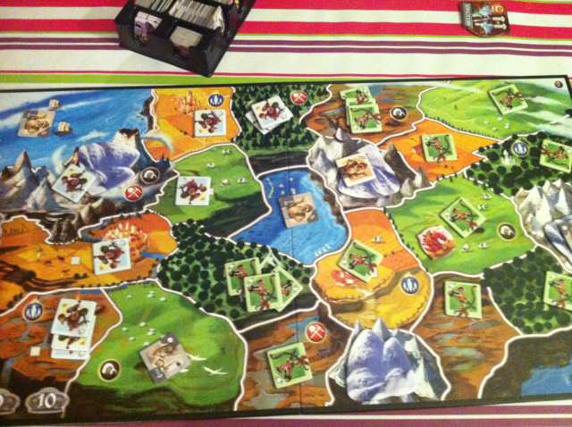 - les phases de points à compter sont clairement chiantes (entre les règles spéciales et les territoires conquis oublié on finit par ne plus avoir envie de compter et de profiter simplement du jeu…)