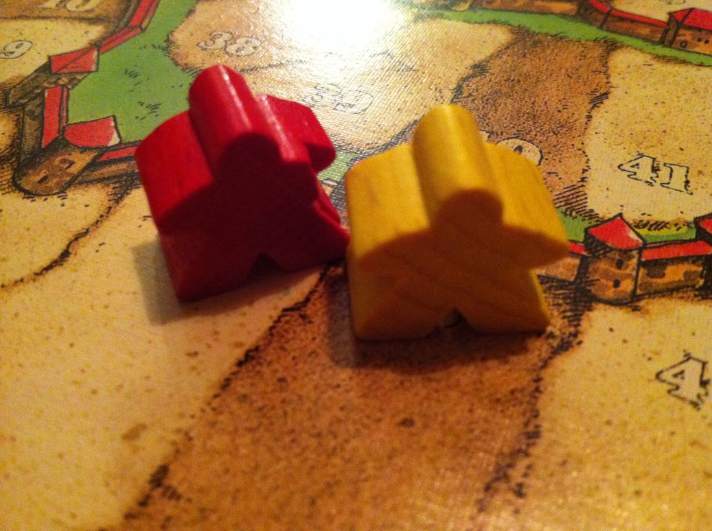 • Un de mes meeples rouge est arrivé cassé, mutilé, manchottttttttttt :'( et bien ça n’a pas empêché le joueur des rouges de gagner :p