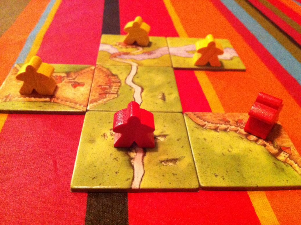 - Un de mes meeples rouge est arrivé cassé, mutilé, manchottttttttttt :'( et bien ça n’a pas empêché le joueur des rouges de gagner :p