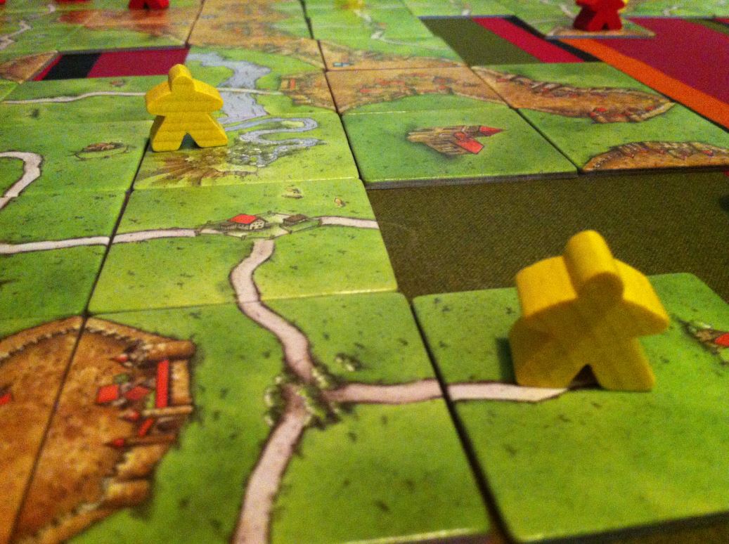 La partie s’arrête à la dépose de la dernière tuile. Et l’on peut compter les points des derniers meeples restants dont les territoires ne sont pas fermés.