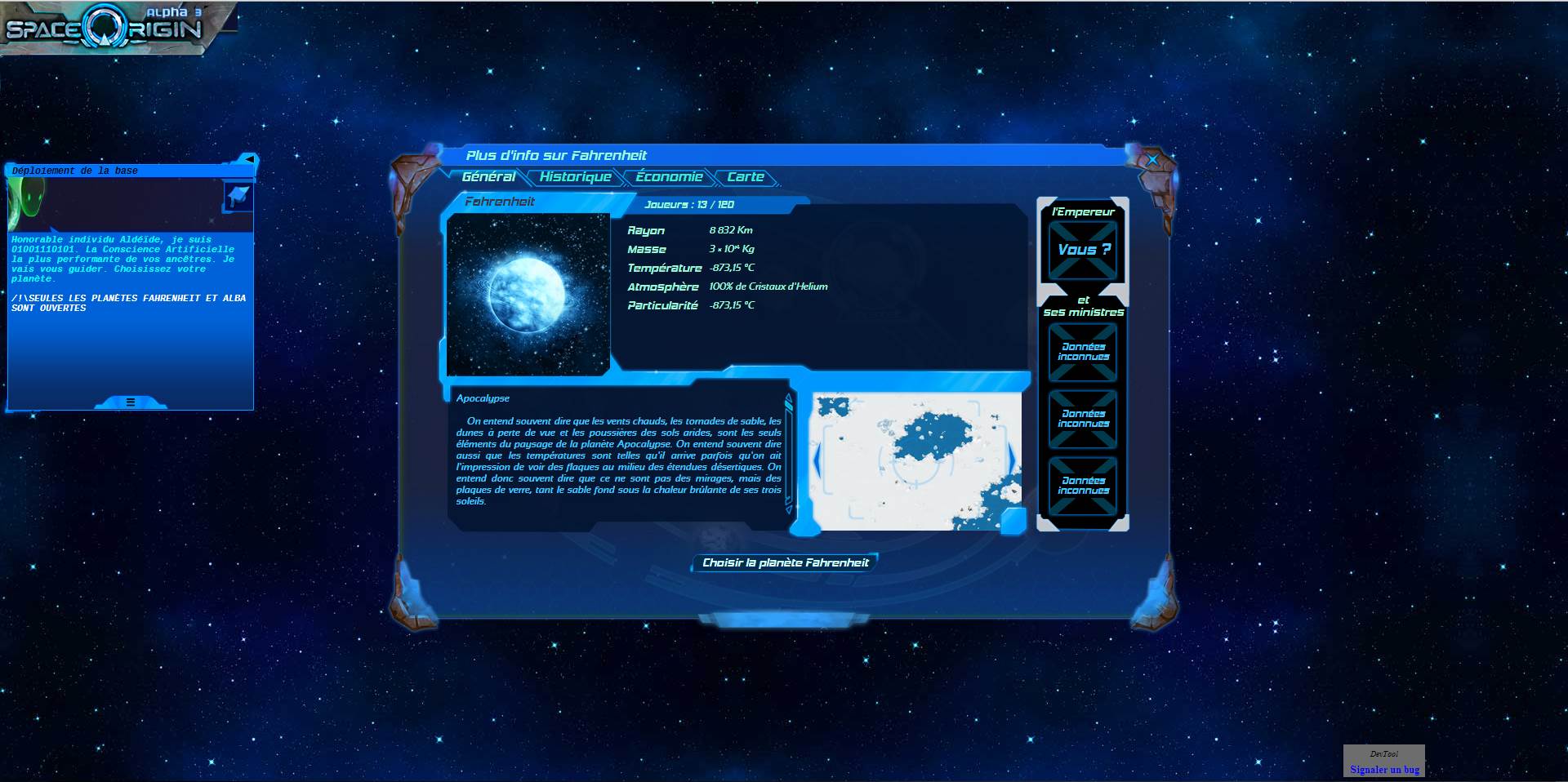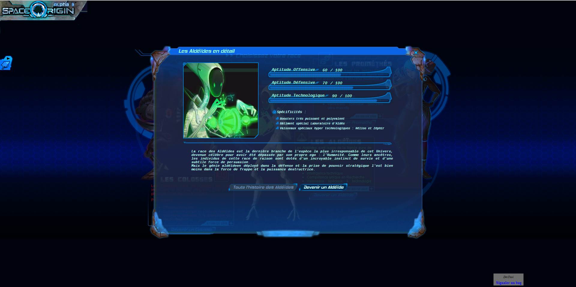 J’ai donc choisi la race des Aldéides et la planète Fahrenheit.