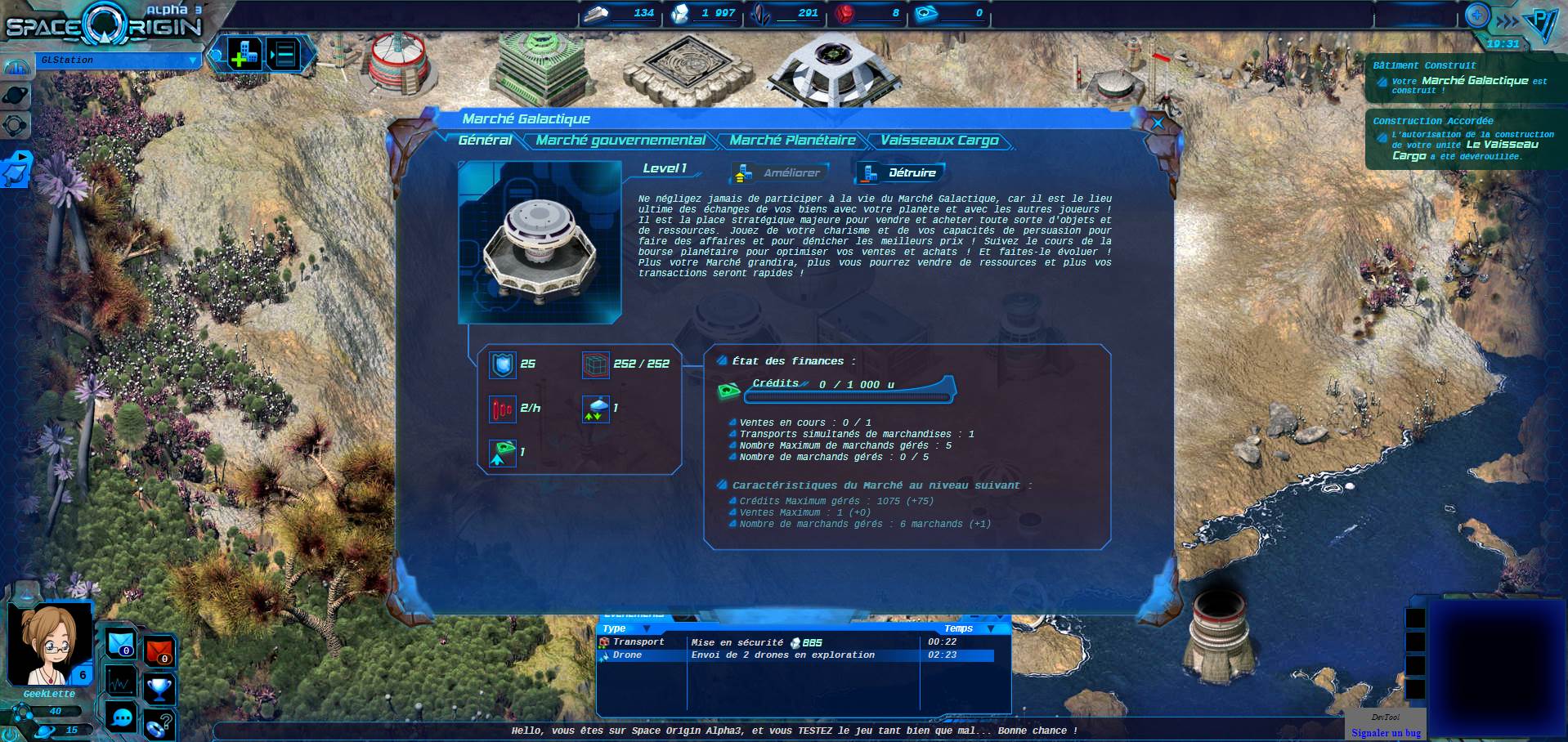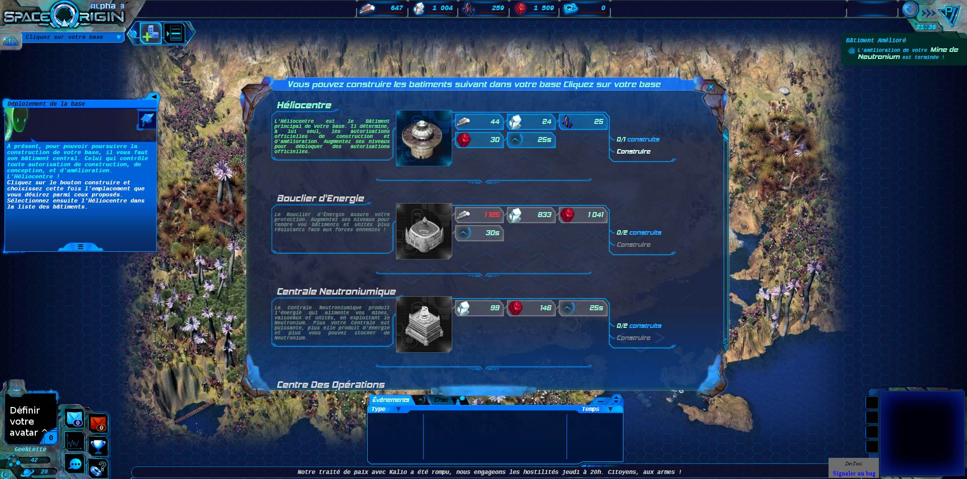• la construction de plusieurs bâtiments ayant leur particularité (production de ressources, exploration, construction de vaisseaux, diplomatie, commerce…)