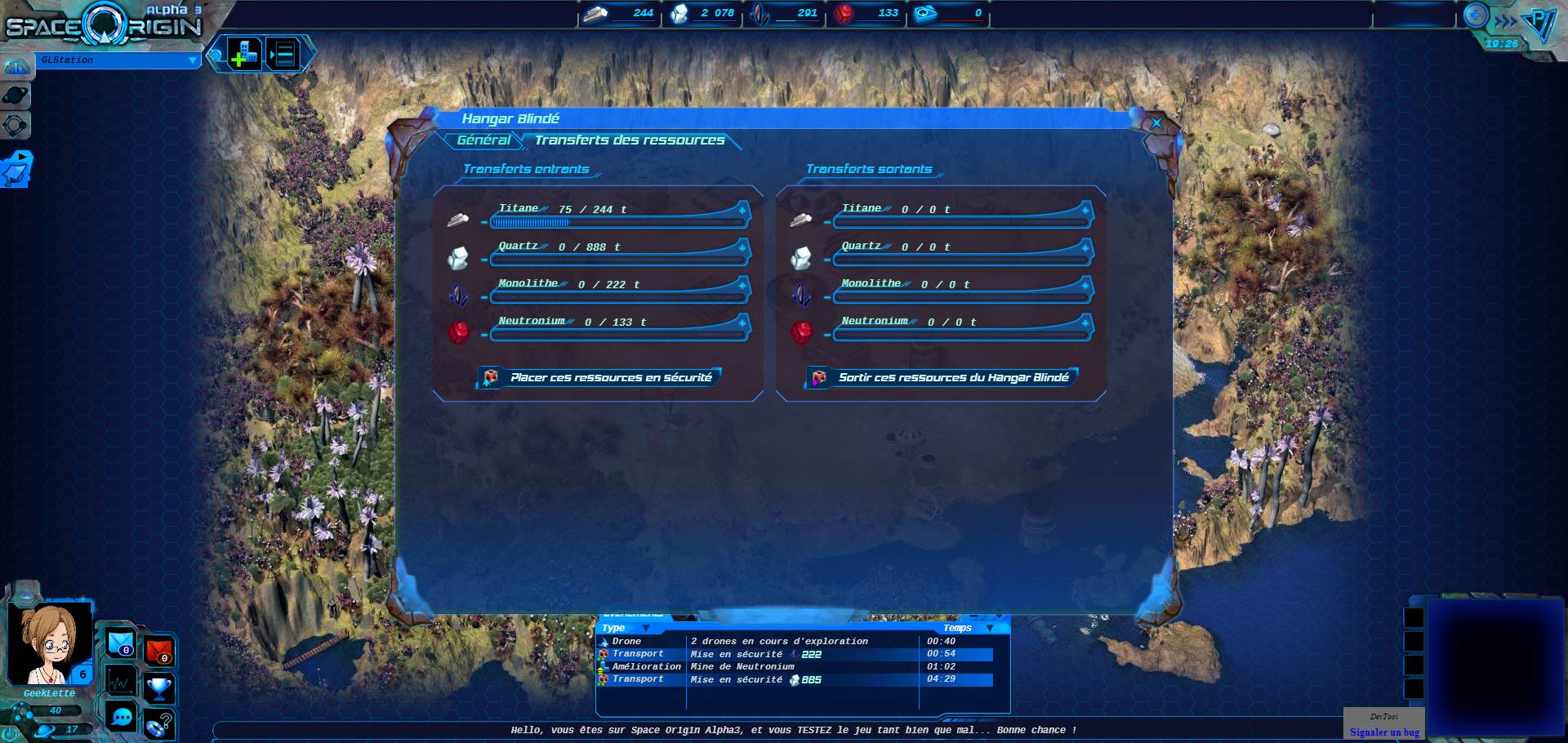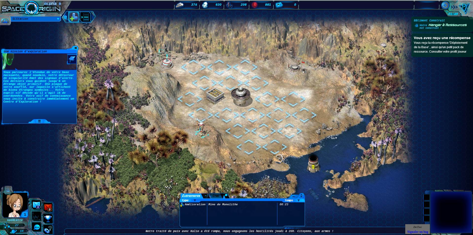 mais rassurez-vous, on ne vous prend pas tout, c’est ça qui est bien aussi dans Space Origin. Si vous allez travailler toute la journée, votre base aura peut-être été pillée un peu (on va dire 10% de vos ressources seront perdues) mais vous ne perdez ni bâtiments ni améliorations. Par contre, à vous de mettre vos ressources en lieu sûr (hangar blindé).
