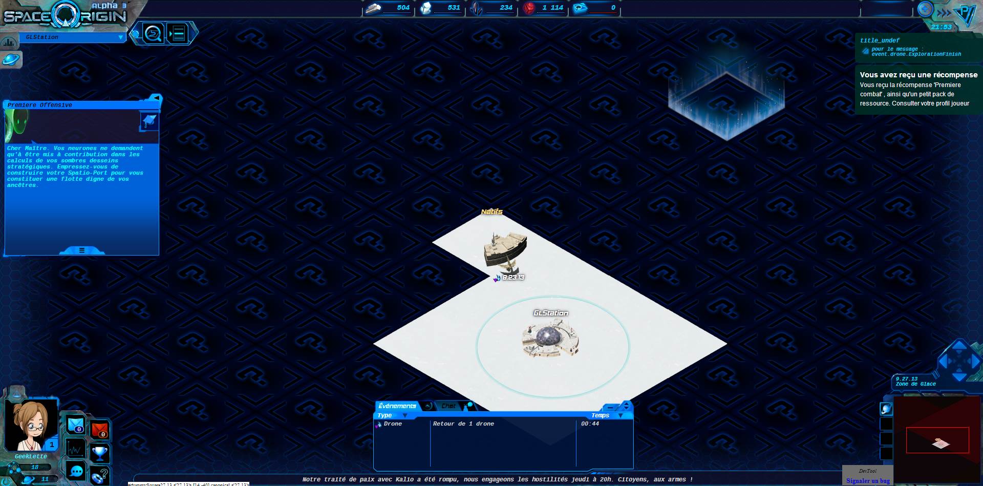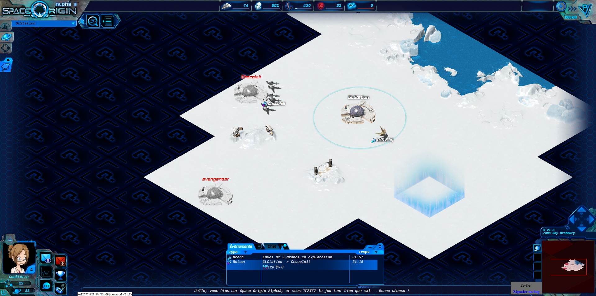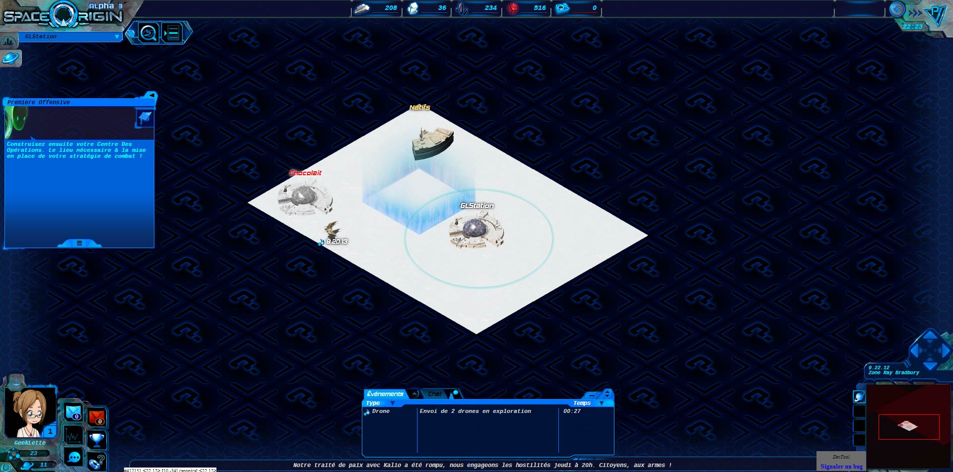 Les natifs, découverts par l’exploration avec le tuto, permettent de nous entraîner à attaquer ou à nous défendre. Puis l’exploration permet ensuite de découvrir les bases voisines des autres joueurs. Vous pouvez ainsi envoyer vos vaisseaux piller les voisins en choisissant quelles sont les ressources que vous recherchez le plus.