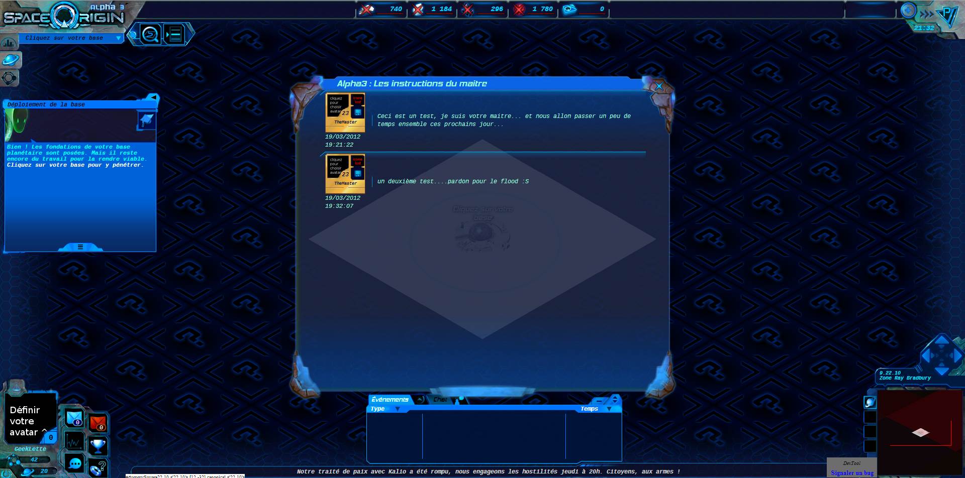• un tchat, un tutoriel et une messagerie (message d’information, message de combats, message du chef)