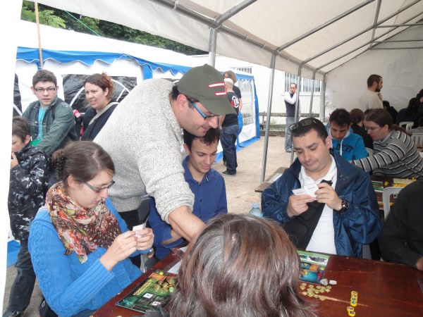 On sentait par ailleurs l’investissement hallucinant des auteurs pour les prototypes des jeux de demain. J’ai pu rencontrer Philippe, futur célèbre auteur des Légendes d’Héléna : Jeu d’aventure coopératif pour 2 à 6 joueurs de + de 12 ans. Il concourait pour le niveau expert. Auteur et tout jeune papa, il a bravé vents et marées (sale douche avec la pluie) pour être au top à toute heure du festival. Il ne compte plus les heures passées sur son proto et les retours sont très encourageants. Je vous invite à aller à sa rencontre rien que pour sa bonne humeur et sa passion, d’autant que son jeu commence à prendre forme.